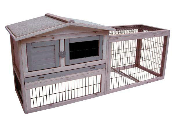 Sunshine Jumbo Cottage in de kleur grijs. Dit konijnenhok van Flamingo is voorzien van een extra lange aansluitende ren. Het formaat van de de cottage met ren is 230 x 53 x 70 en dit biedt je konijnen dan ook alle ruimte om de pootjes te strekken. Dit grote buitenhok staat fantastisch in iedere tuin.